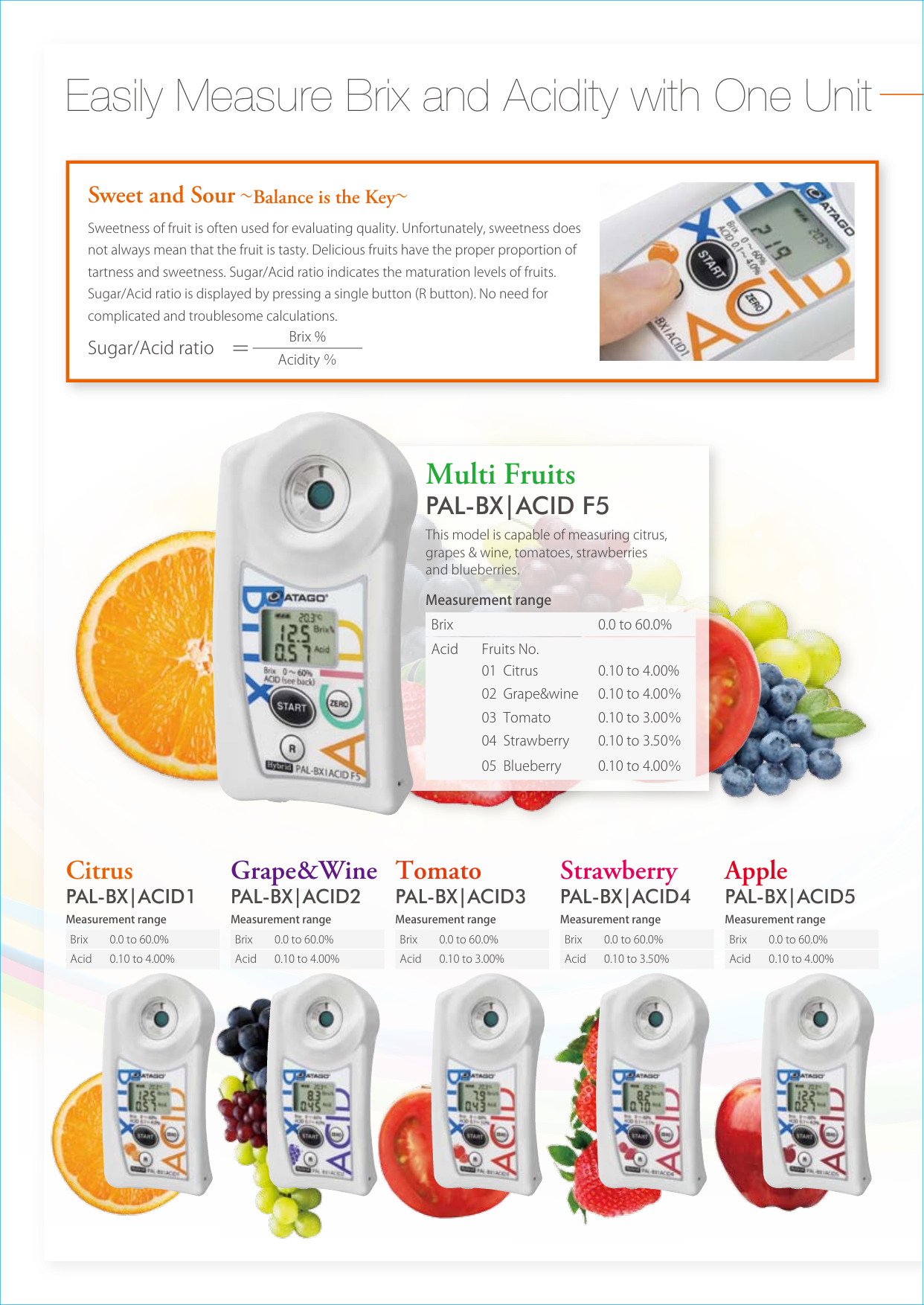 Rango de Medida Brix 0.0 a 60.0% Acidez: 0.10 a 4.00%