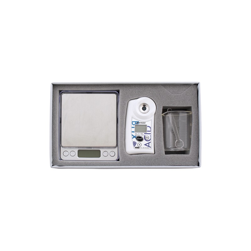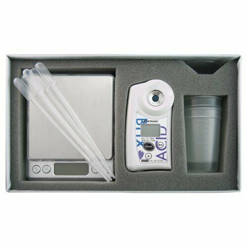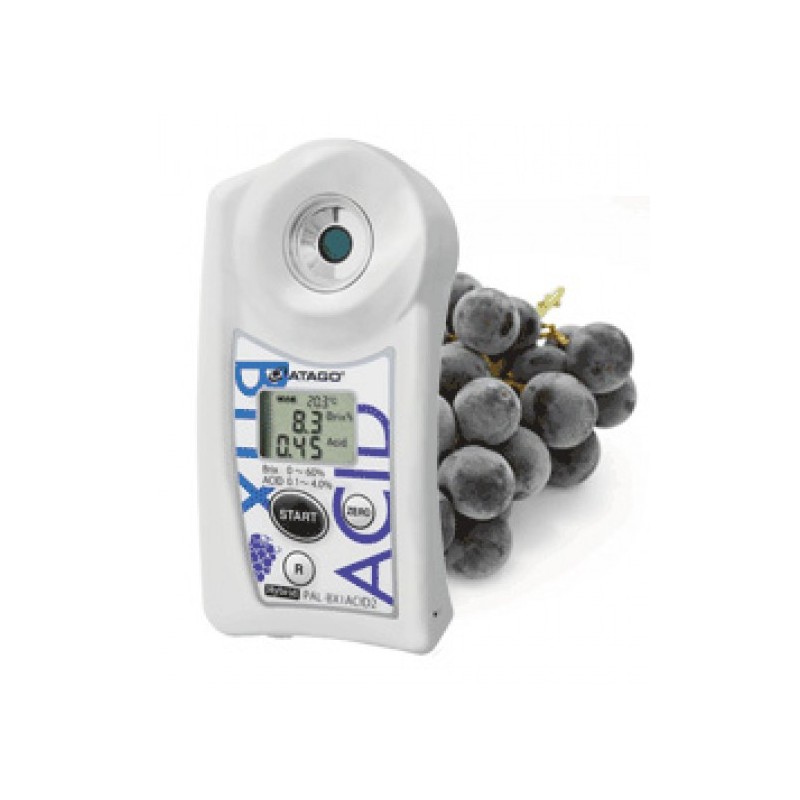 Este medidor de Atago mide la acidez total en uvas, mosto o vino. El ácido tartárico es el tipo de acido predominante en uvas.