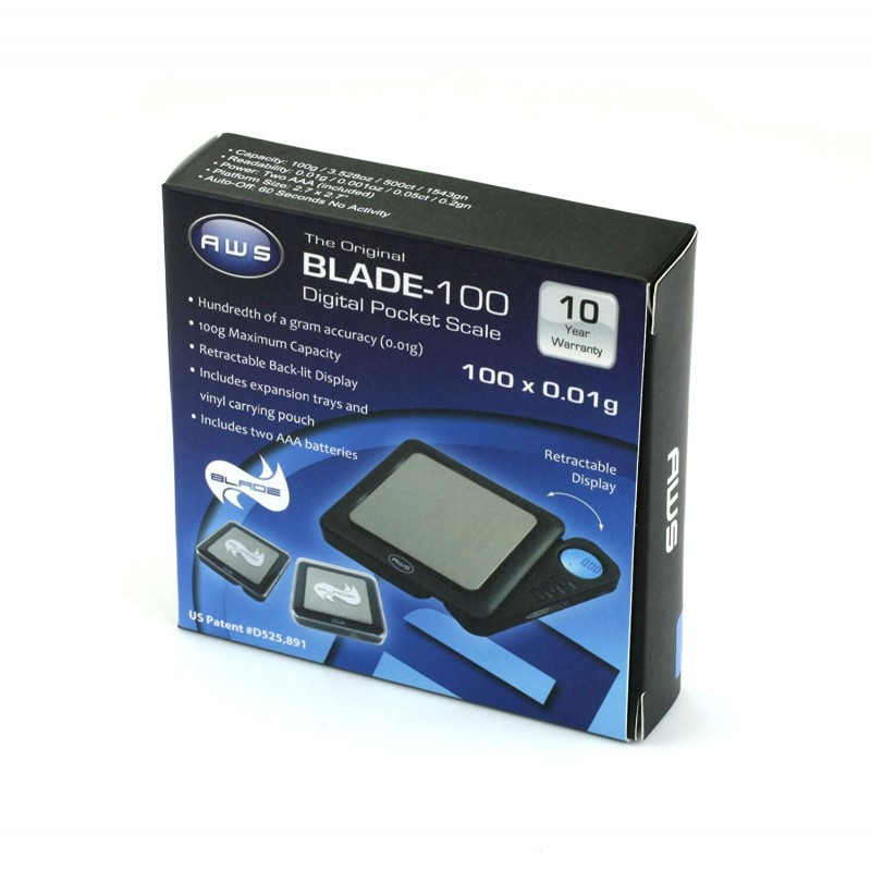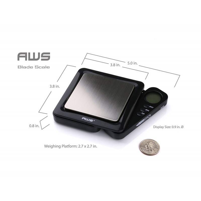 La báscula negra AWS Blade 1KG de American Weigh Scales es la báscula digital de bolsillo original con una pantalla retroiluminada retráctil. Ahora la Blade Scale viene con una bandeja de expansión extra grande y una bolsa de transporte para sostener todo. Cuatro modos de pesaje; gramo, onza, troy onzas y pennyweight. Con una garantía de peso estadounidense de 10 años y un precio tan bajo, tan bajo, solo tiene sentido elegir la Blade Scale original