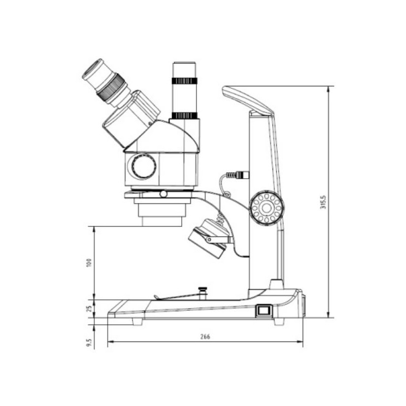 Estativo ergonómico con iluminaciones LED incidente y transmitida, intensidades luminosas regulables