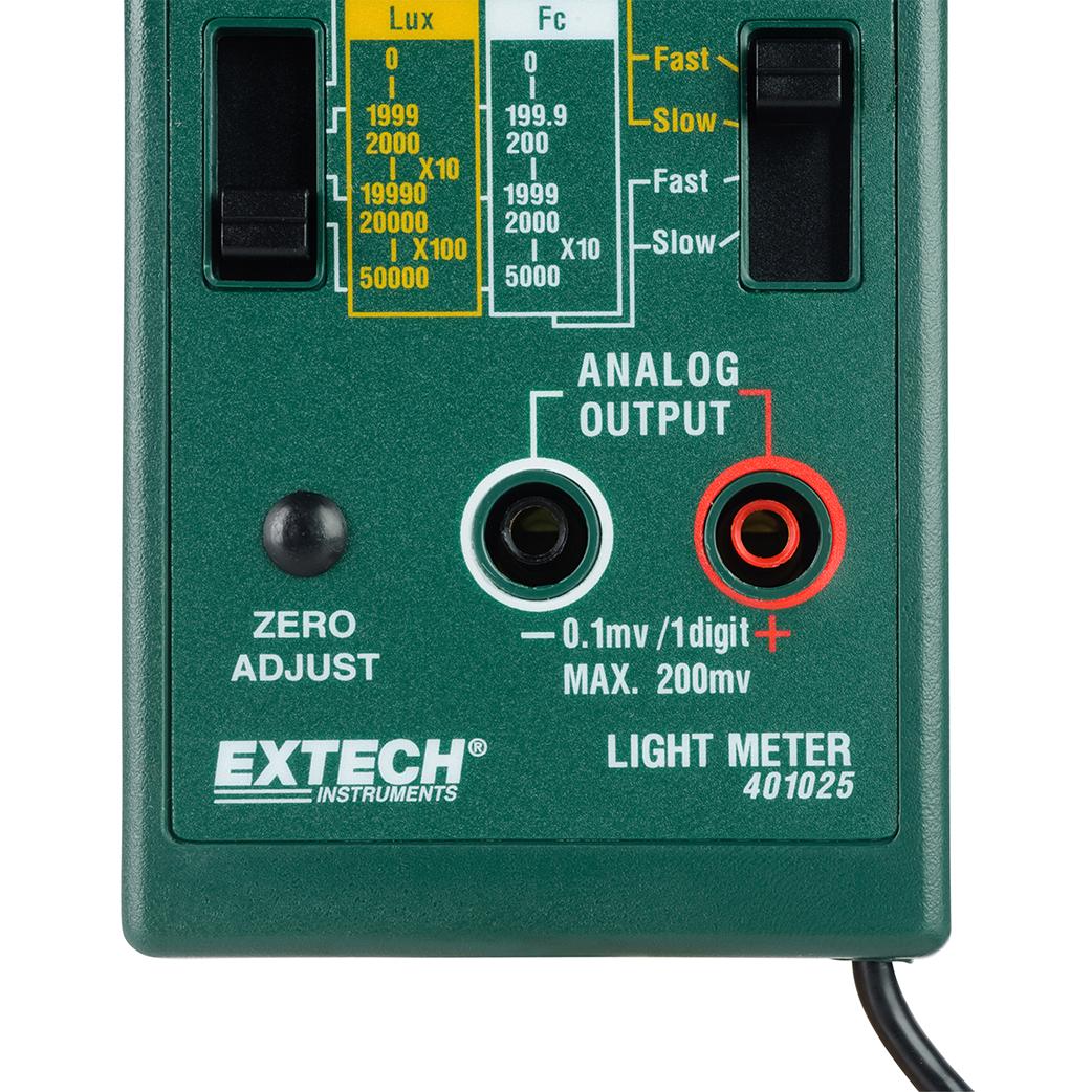 401025 es un medidor de vela / luxómetro que mide el nivel de luz a 5000FC (vela de pie) y 50,000 lux con un 5% de precisión utilizando un diodo fotográfico de precisión y un filtro de corrección de color. El medidor presenta un tiempo de respuesta rápido / lento y una salida analógica (1 mV por conteo) para capturar las lecturas en una grabadora. Viene completo con batería de 9 voltios.