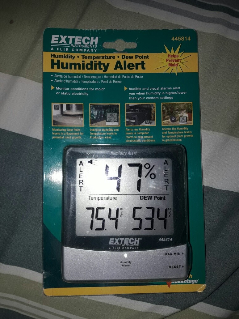 La alarma de humedad con termómetro termómetro de Extech con punto de rocío presenta una gran pantalla LCD de fácil lectura para la humedad relativa, la temperatura y el punto de rocío. Las alarmas sonoras y visuales alertarán a los usuarios que se excedan los puntos de ajuste programados.