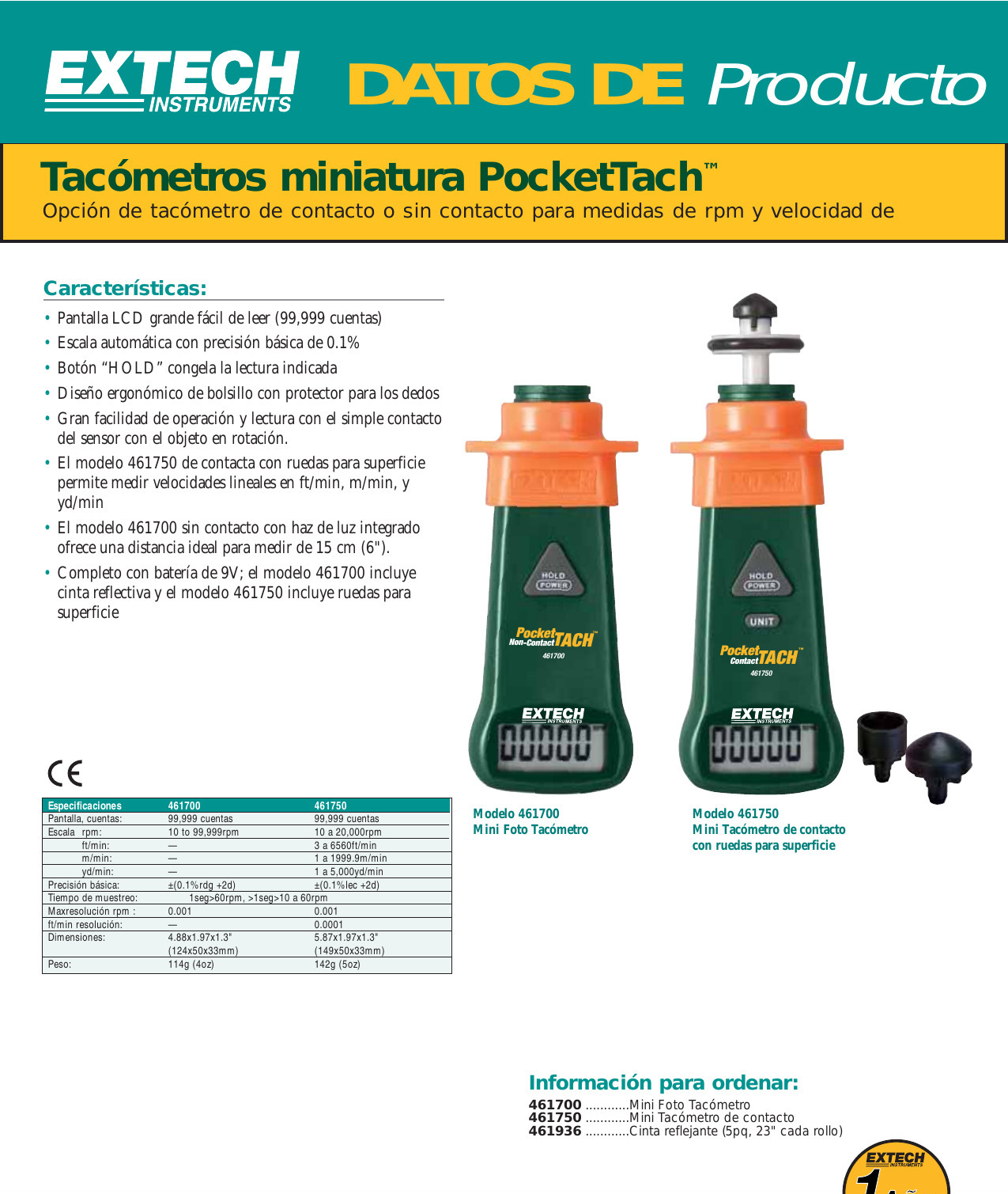TACOMETROS – > MARCA: EXTECH -> MODELO: 461750 ; realizamos entrega en las ciudades de Lima, Arequipa, Cusco , Moquegua , Tacna , Ica , Chiclayo , Trujillo, Cajamarca, Piura, Tumbes, iquitos, Huancayo , Ayacucho , Pucallpa, Huanuco , Cerro de Pasco ; llevamos mas de 10 años comercializando EXTECH en Peru , somos especialistas importando tacometros, equipos de medicion , fototacometro, tacometro extechFototacómetro miniatura de contacto PocketTach® EXTECH – 461750