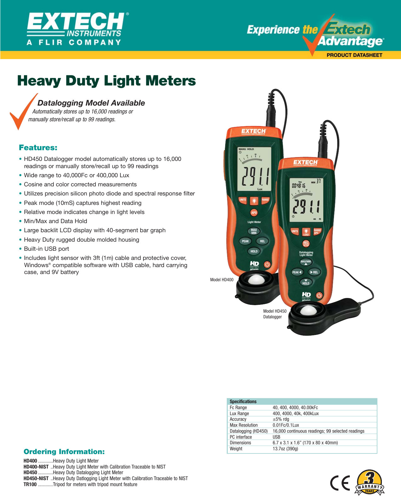 Extech HD450: Medidor de luz para trabajos pesados de registro de datos