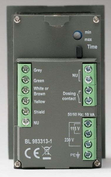 El contacto de dosificación del relé está clasificado para una carga de hasta 2 A y está protegido por fusible.