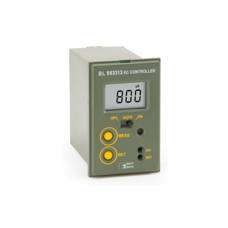 El BL983313 es un controlador de proceso compacto, montado en panel, para medir la conductividad electrolítica (EC) de un flujo de proceso que está dentro del rango de 0 a 1999 μS / cm. Los usuarios pueden elegir entre los modos de dosificación automática o manual. Cuando está en modo automático, el relé de contacto seco se activa cuando la lectura está por encima del punto de ajuste. El relé se puede usar para activar una bomba dosificadora o un solenoide que controla una válvula.