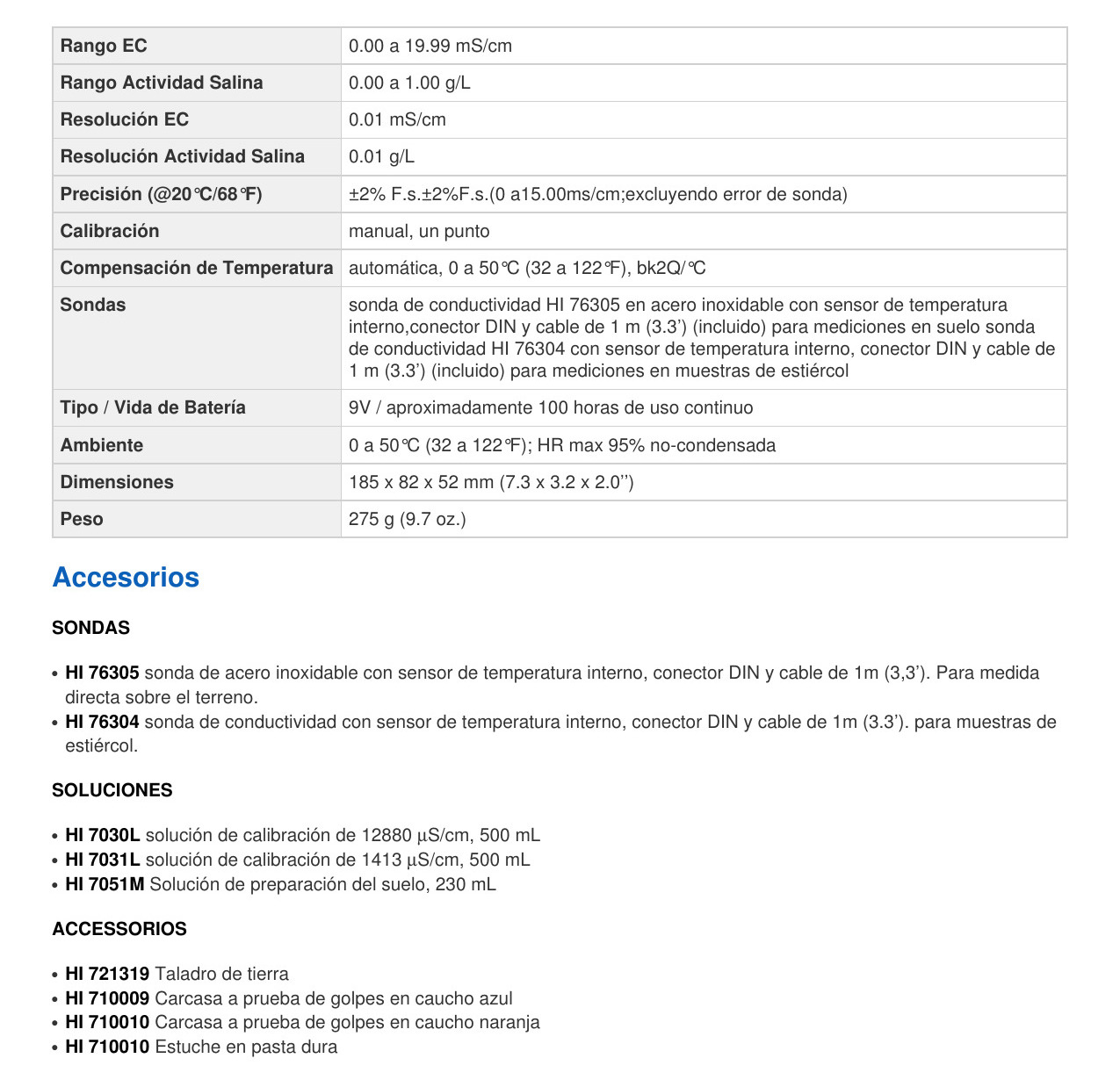 – Incluidas 2 sondas (solución de tierra y acuosa)