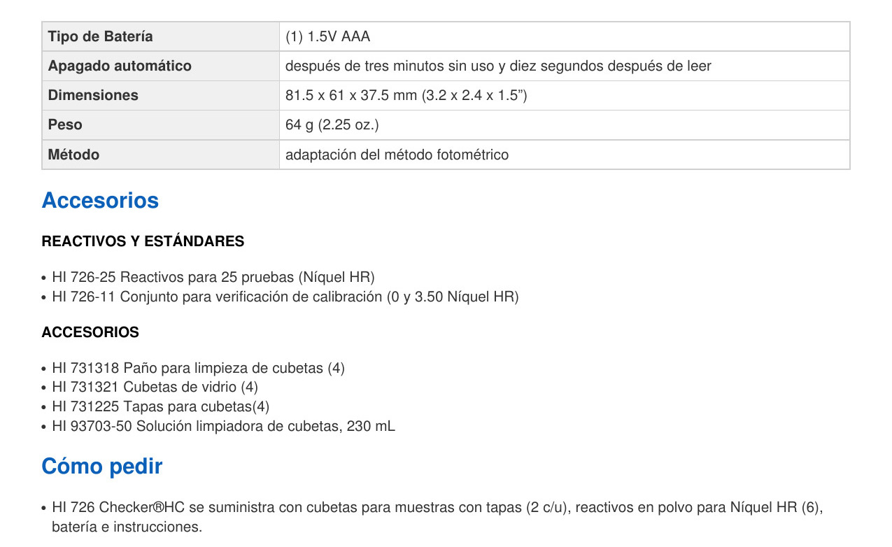 COLORIMETRO – > MARCA: HANNA -> MODELO: HI726 ; realizamos entrega en las ciudades de Lima, Arequipa, Cusco , Moquegua , Tacna , Ica , Chiclayo , Trujillo, Cajamarca, Piura, Tumbes, iquitos, Huancayo , Ayacucho , Pucallpa, Huanuco , Cerro de Pasco ; llevamos mas de 10 años comercializando HANNA en Peru , somos especialistas importando colorimetro, colorimetro portatil , colorimetro de niquel, colorimetro de bolsilloColorímetro de Bolsillo Checker de Niquel – HI726