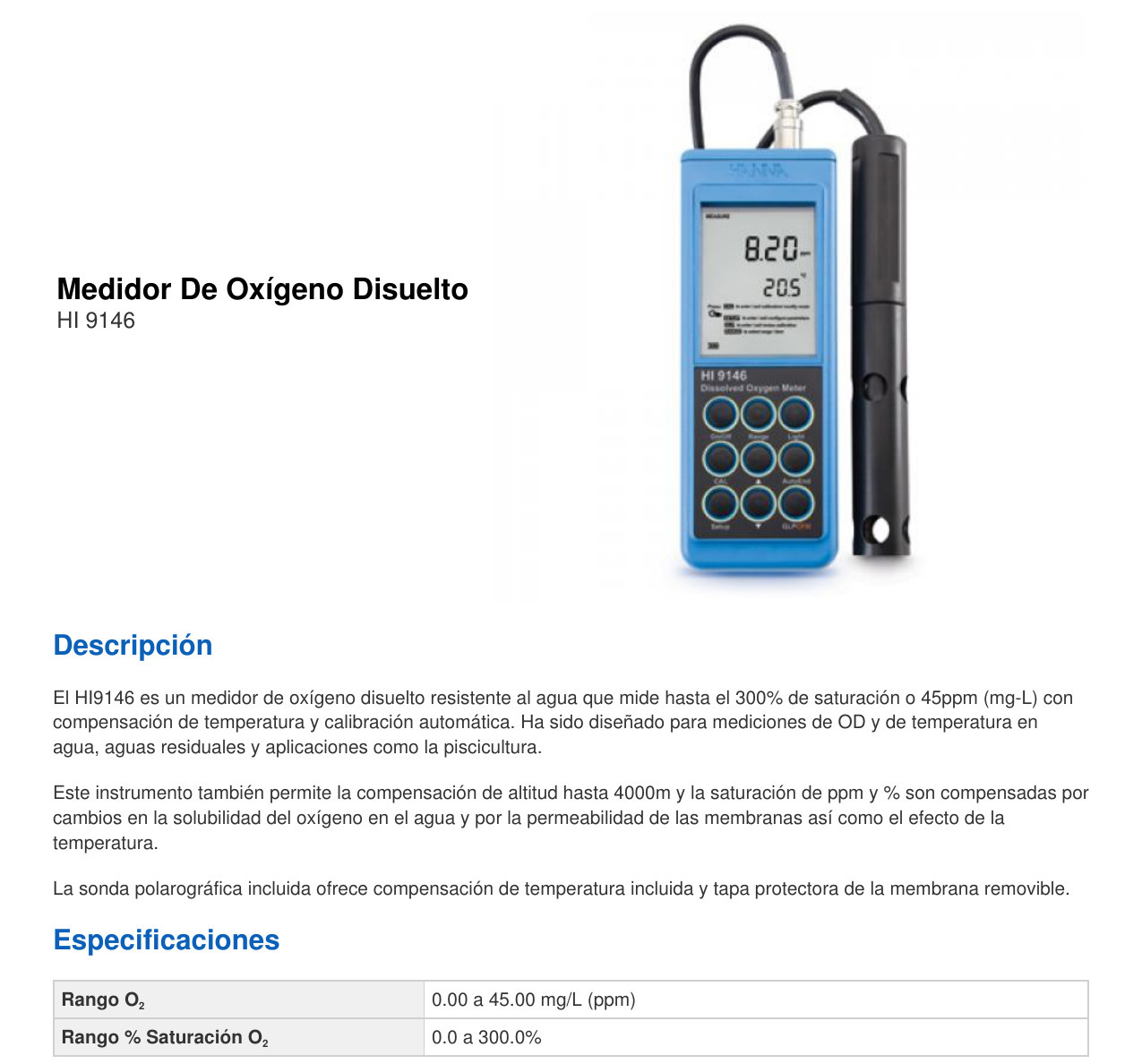 Rango O2 0.00 a 45.00 mg/L (ppm)