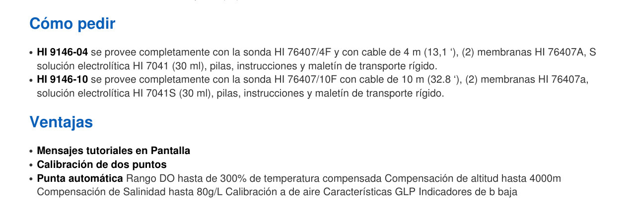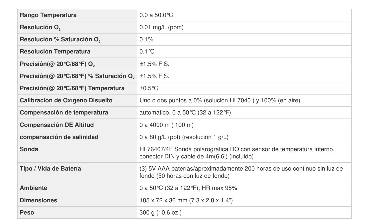 – HI76407 / 10F sonda oxígeno disuelto con 10 m de cable y tapa de protección para el modelo HI9146-10.