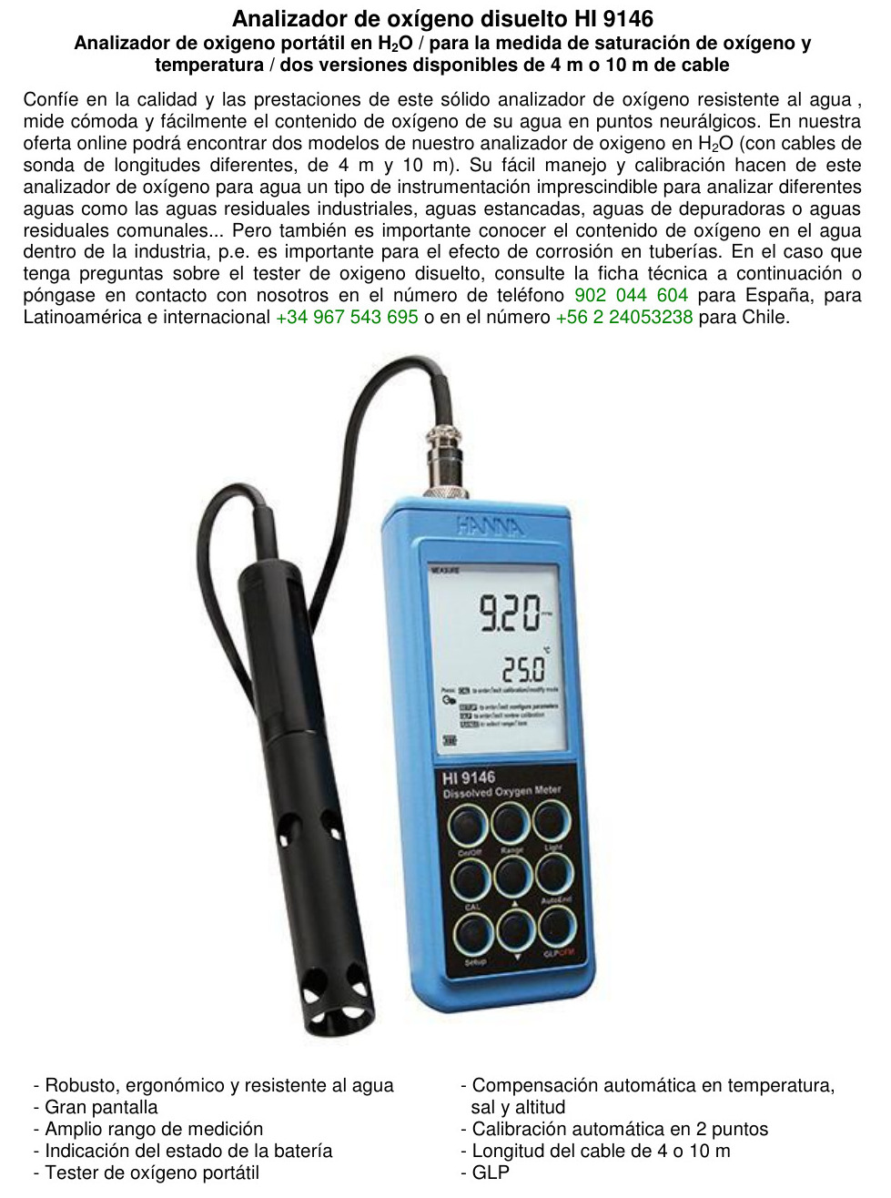 MEDIDOR DE OD HANNA – > MARCA: HANNA -> MODELO: HI9146V ; realizamos entrega en las ciudades de Lima, Arequipa, Cusco , Moquegua , Tacna , Ica , Chiclayo , Trujillo, Cajamarca, Piura, Tumbes, iquitos, Huancayo , Ayacucho , Pucallpa, Huanuco , Cerro de Pasco ; llevamos mas de 10 años comercializando HANNA en Peru , somos especialistas importando medidor de od hanna, equipos de medicion , medidor de od, medidor de oxigeno disueltoMedidor de OD HANNA – HI9146V