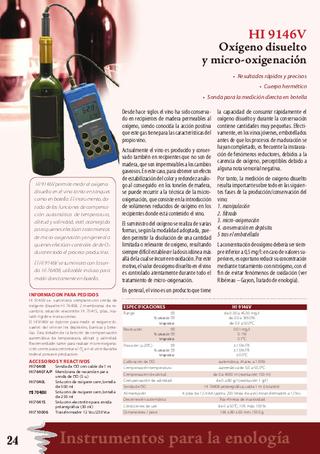 HI 9146V permite medir el oxígeno disuelto en el vino tanto en tanques como en botella. El instrumento, dotado de las funciones de compensación automática de temperatura, altirud y salinidad, está aconsejado para quienes efectúan tratamientos de micro-oxigenación y en general a quienes efectúan controles de de 0; durante todo el proceso productivo. El HI 9146Vse suministra con la sonda HI 76408, utilizable incluso para medir directamente en botella.