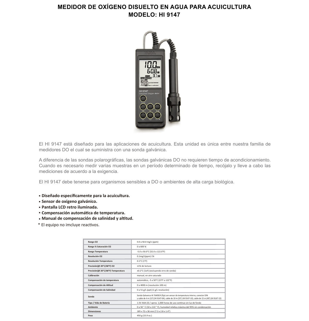 MEDIDOR DE OD HANNA – > MARCA: HANNA -> MODELO: HI9147-04 ; realizamos entrega en las ciudades de Lima, Arequipa, Cusco , Moquegua , Tacna , Ica , Chiclayo , Trujillo, Cajamarca, Piura, Tumbes, iquitos, Huancayo , Ayacucho , Pucallpa, Huanuco , Cerro de Pasco ; llevamos mas de 10 años comercializando HANNA en Peru , somos especialistas importando medidor de od hanna, equipos de medicion , medidor de od, medidor de oxigeno disueltoMedidor de OD con sonda de 4 metros galvánica HANNA – HI9147-04