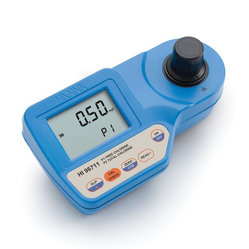 El HI 96711 es un medidor que mide el contenido de cloro libre y cloro total (Cl2) en el agua y aguas residuales.