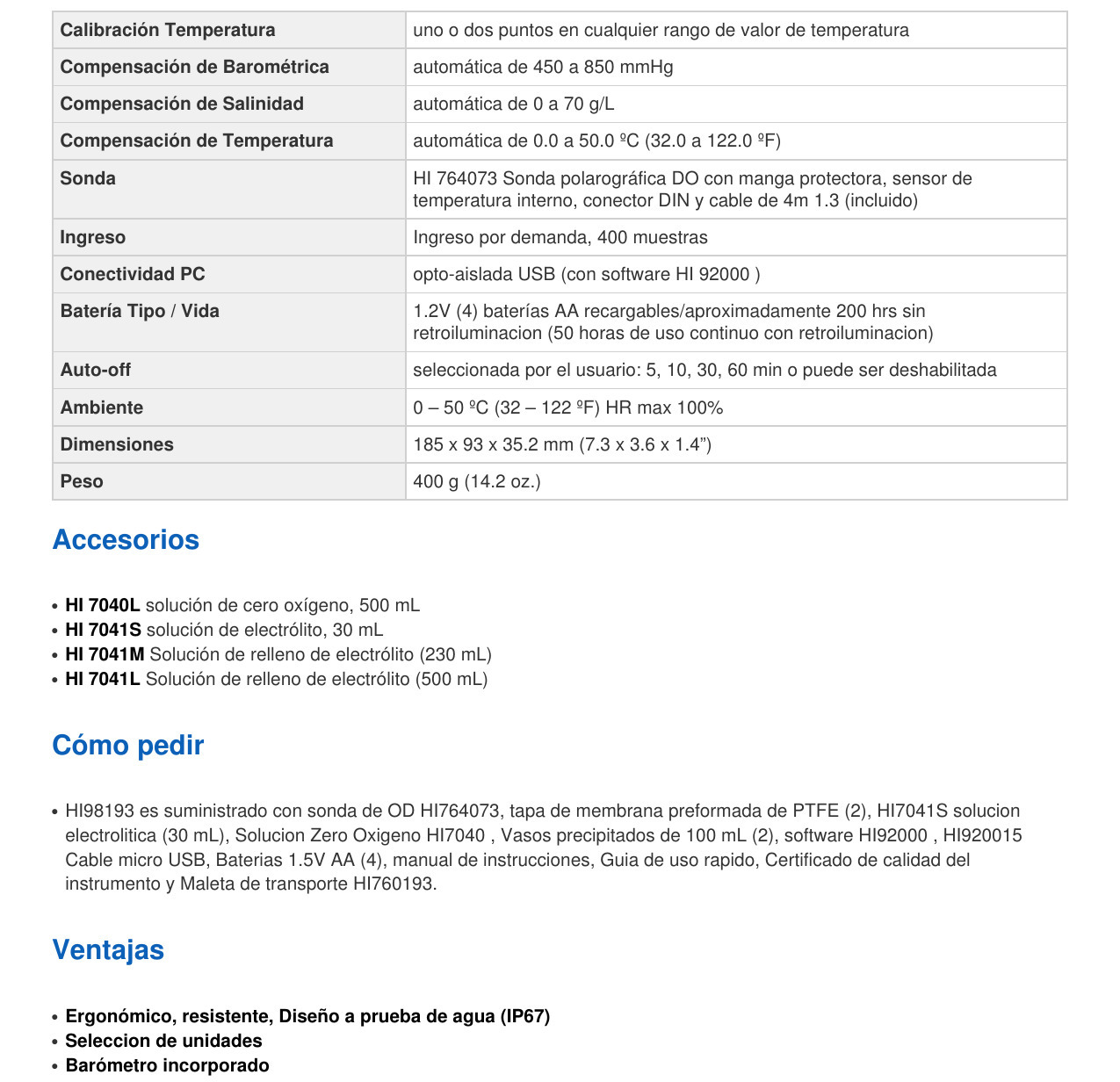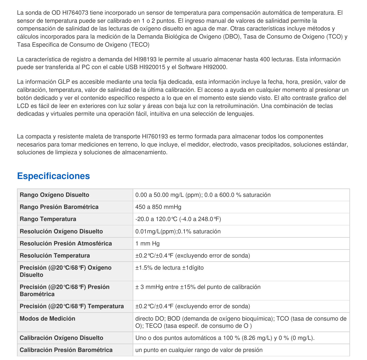 Resolución 0,01 mg/L (ppm); 0,1% saturación