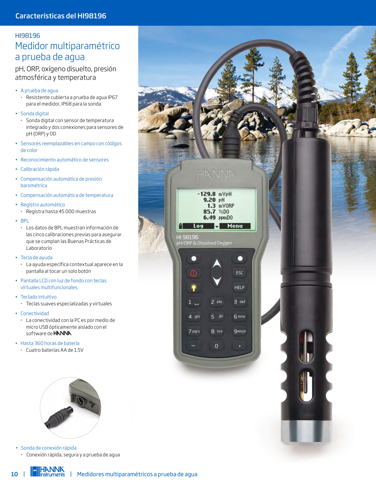 MULTIPARAMETRO A PRUEBA DE AGUA – > MARCA: HANNA -> MODELO: HI98196 ; realizamos entrega en las ciudades de Lima, Arequipa, Cusco , Moquegua , Tacna , Ica , Chiclayo , Trujillo, Cajamarca, Piura, Tumbes, iquitos, Huancayo , Ayacucho , Pucallpa, Huanuco , Cerro de Pasco ; llevamos mas de 10 años comercializando HANNA en Peru , somos especialistas importando multiparametro a prueba de agua, medidor multiparametrico , multiparametro hanna, medidor multiparametrico para calidad del aguaMedidores multiparamétricos a prueba de agua HANNA – HI98196