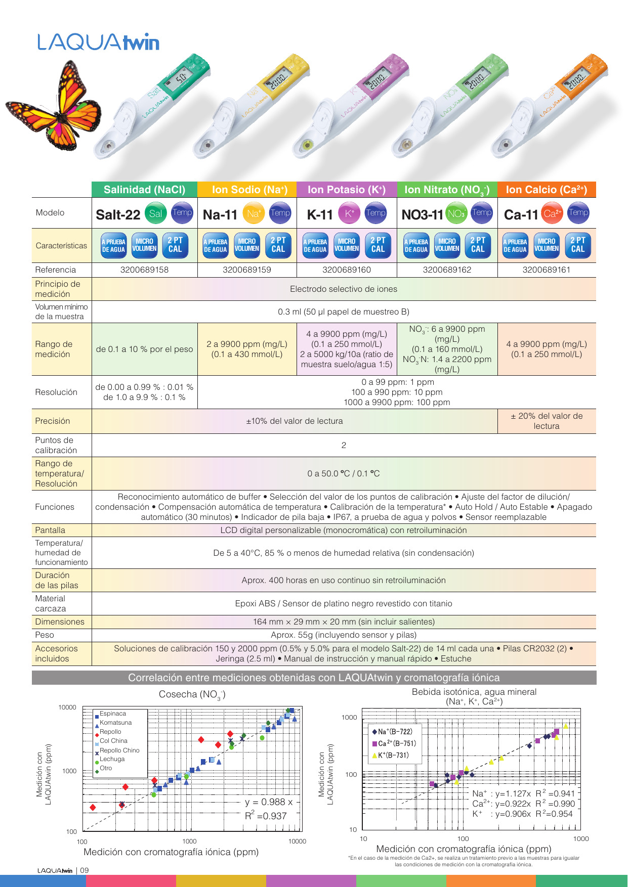 El amplio rango de medición de 4 a 9900 ppm (0.1 a 250 mmol/l) permite medir concentraciones altas sin necesidad de llevar a cabo una dilución. El LAQUAtwin-K-11 no usa reactivos.