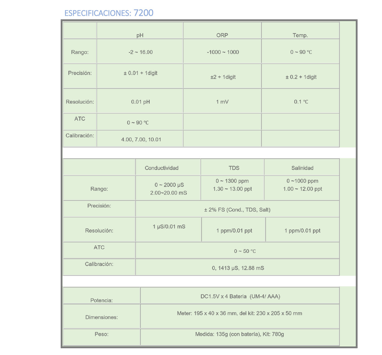 – Rango pH: 0 a 14.00