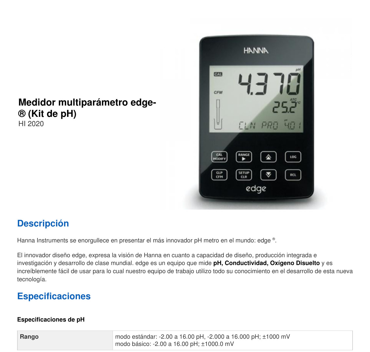 MEDIDOR DE PH DE MESA – > MARCA: HANNA -> MODELO: HI2020 ; realizamos entrega en las ciudades de Lima, Arequipa, Cusco , Moquegua , Tacna , Ica , Chiclayo , Trujillo, Cajamarca, Piura, Tumbes, iquitos, Huancayo , Ayacucho , Pucallpa, Huanuco , Cerro de Pasco ; llevamos mas de 10 años comercializando HANNA en Peru , somos especialistas importando medidor de ph de mesa, medidor de ph , equipos de medicion de ph, medidor de ph hannaMedidor de pH de mesa Edge HANNA – HI2020