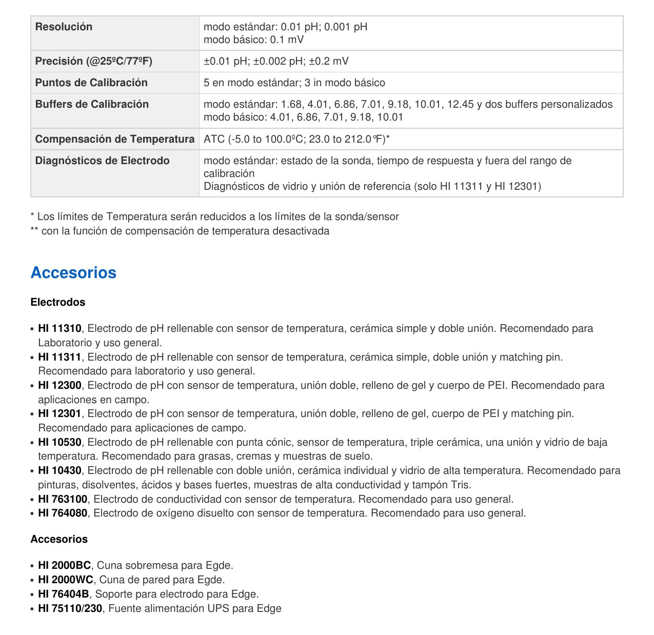 pH Precisión (@ 25ºC / 77ºF) ± 0,2 mV, ± 0,01 pH, ± 0,002 pH