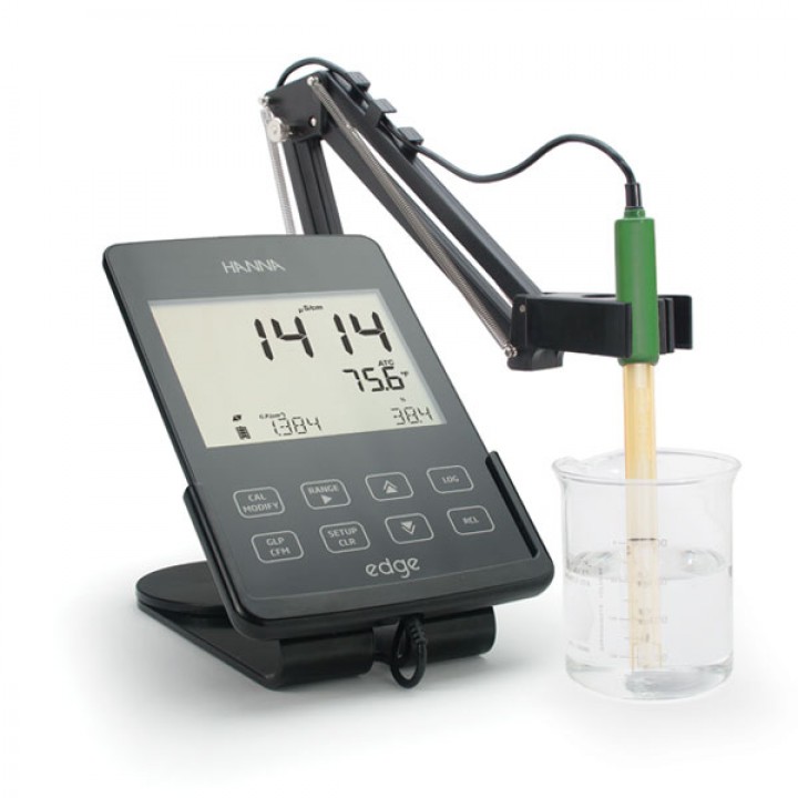 Programado para modos básicos y avanzados, Edge ofrece funciones de pantalla simplificadas para mediciones de rutina o visualización detallada de datos. Advierte a los usuarios si el electrodo no está limpio o si los tampones se contaminan durante la calibración utilizando la función exclusiva de CAL-CHECK de Hanna.