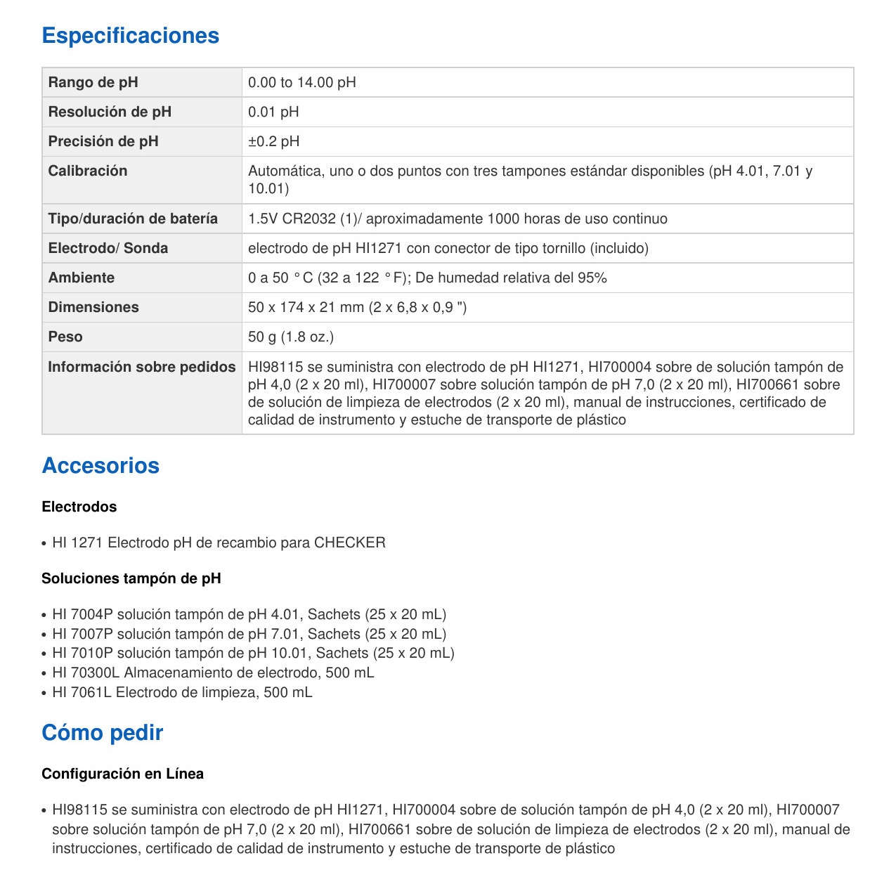 – Electrodo de pH reemplazable (HI 1271)