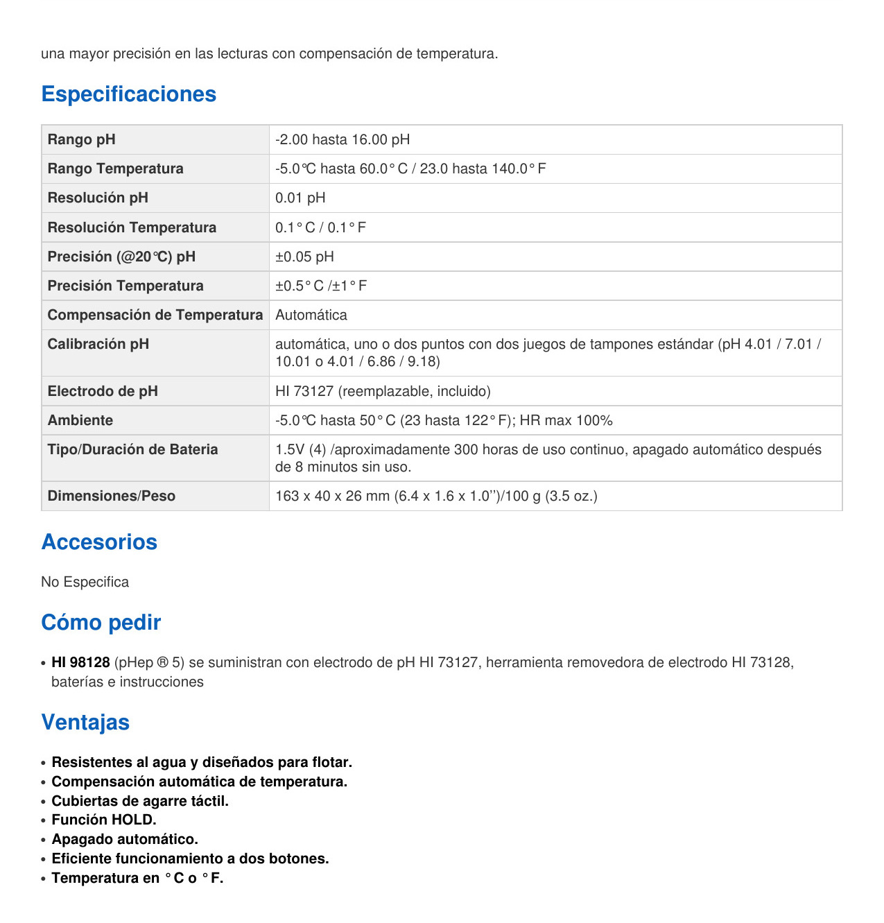 Exactitud pH ± 0.05
