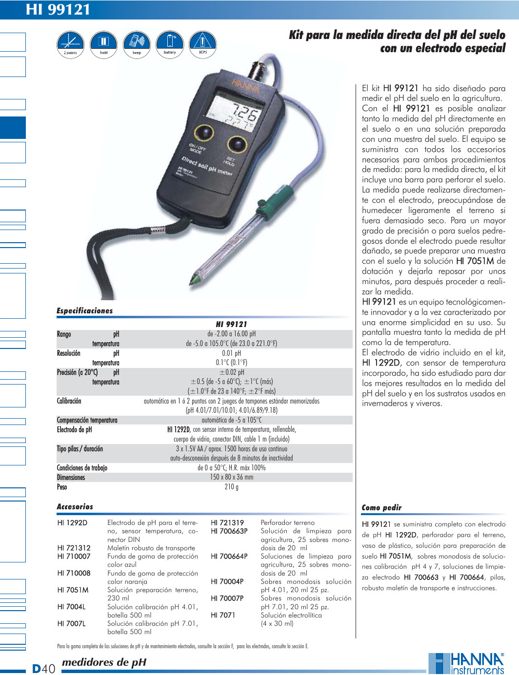 MEDIDOR DE PH PARA SUELOS MARCA: HANNA MODELO: HI99121