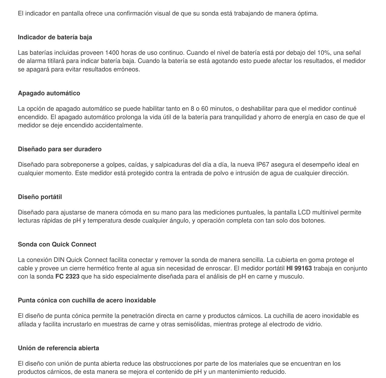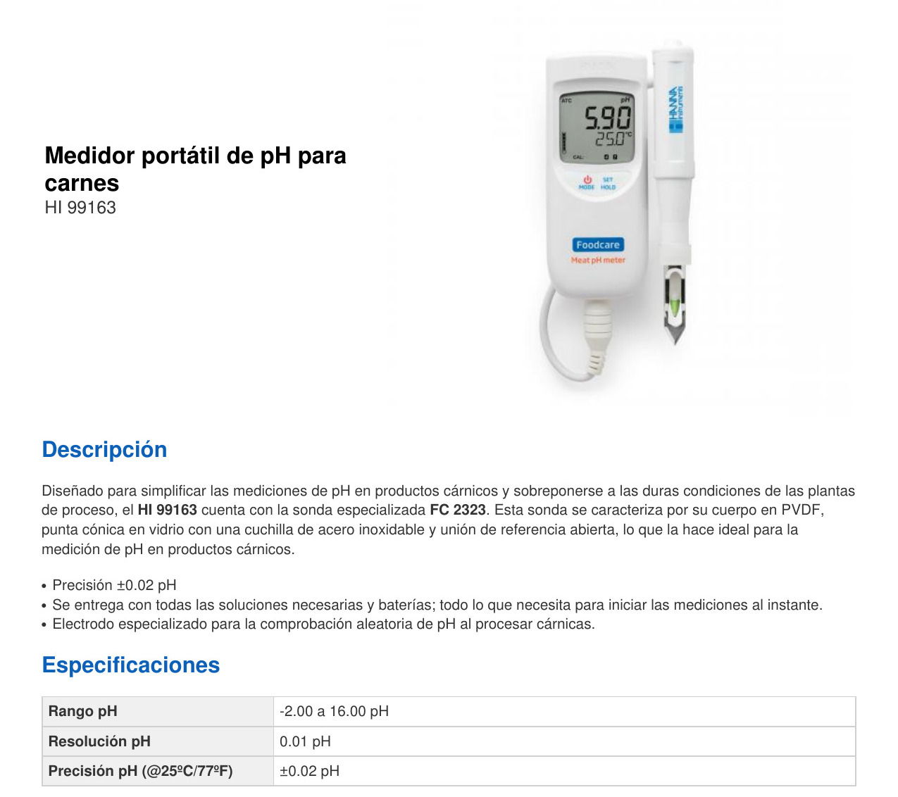 MEDIDOR DE PH Y TEMPERATURA – > MARCA: HANNA -> MODELO: HI99163 ; realizamos entrega en las ciudades de Lima, Arequipa, Cusco , Moquegua , Tacna , Ica , Chiclayo , Trujillo, Cajamarca, Piura, Tumbes, iquitos, Huancayo , Ayacucho , Pucallpa, Huanuco , Cerro de Pasco ; llevamos mas de 10 años comercializando HANNA en Peru , somos especialistas importando medidor de ph y temperatura, medidor de ph , medidor de ph para carnes, medidor de ph para embutidosMedidor de pH para carnes y embutidos HANNA HI99163