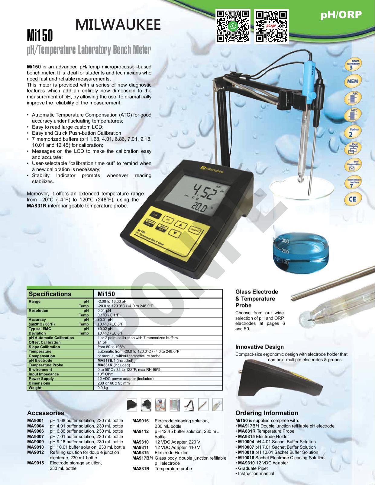 Mi150 es un medidor de banco avanzado basado en microprocesador de pH / temperatura. Es ideal para estudiantes y técnicos que necesitan mediciones rápidas y confiables.