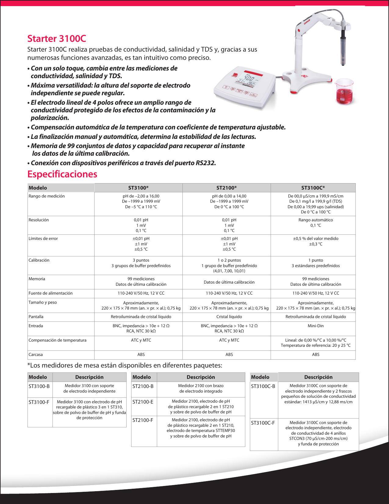 Luego de más de un siglo de perfeccionar el arte de la medición a través de nuestros productos durables de pesaje, la precisión de OHAUS ahora está disponible en una línea de medidores de PH de mesa. La Starter 3100 tiene muchas características inteligentes que la hacen tan intuitiva como precisa para la medición estándar de pH.
