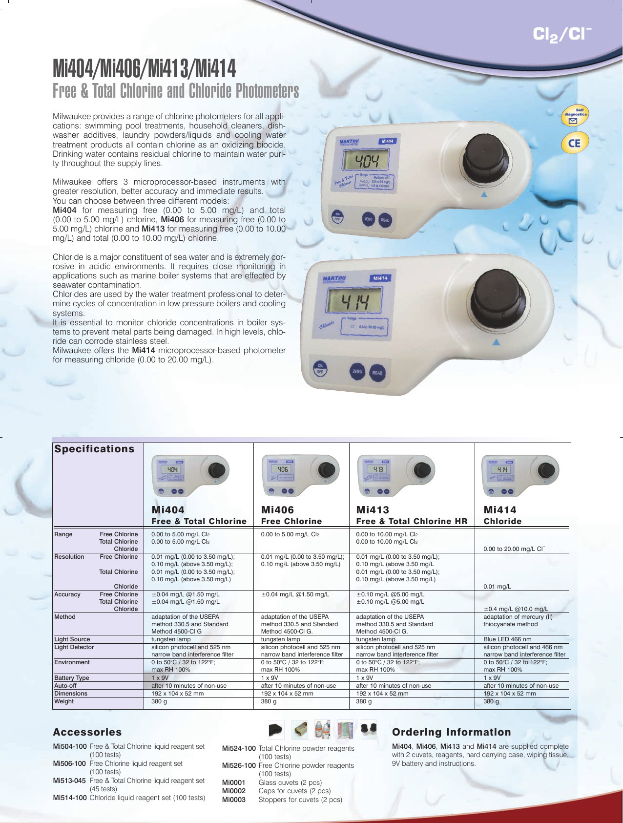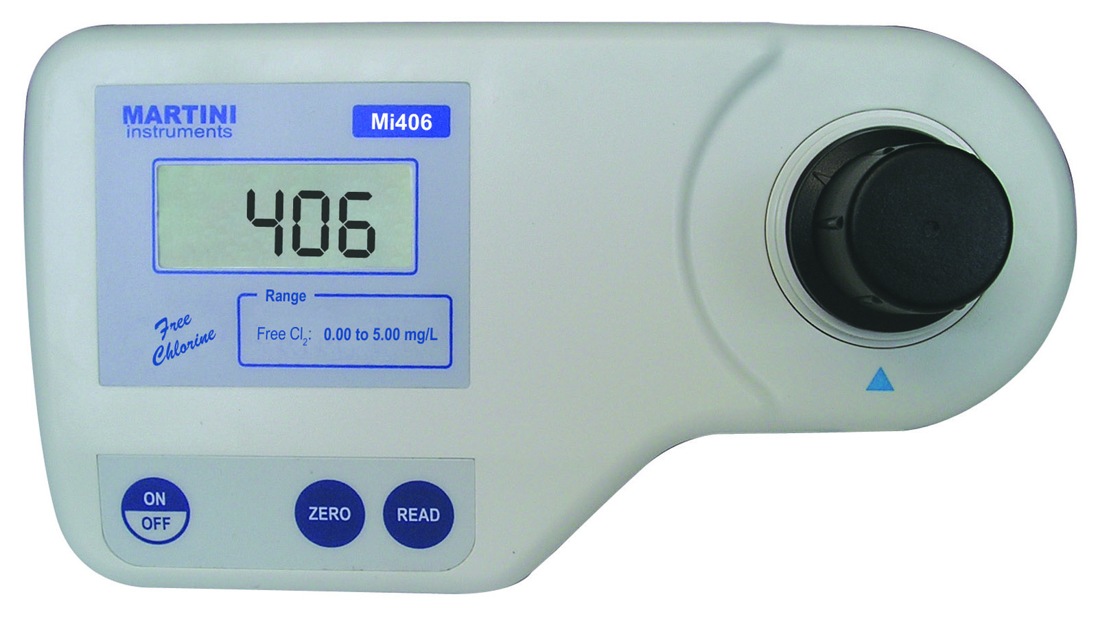 Milwaukee ofrece el instrumento basado en microprocesador Mi406 con mayor resolución, mejor precisión y resultados inmediatos, para medir el cloro libre (0.00 a 5.00 mg / L).