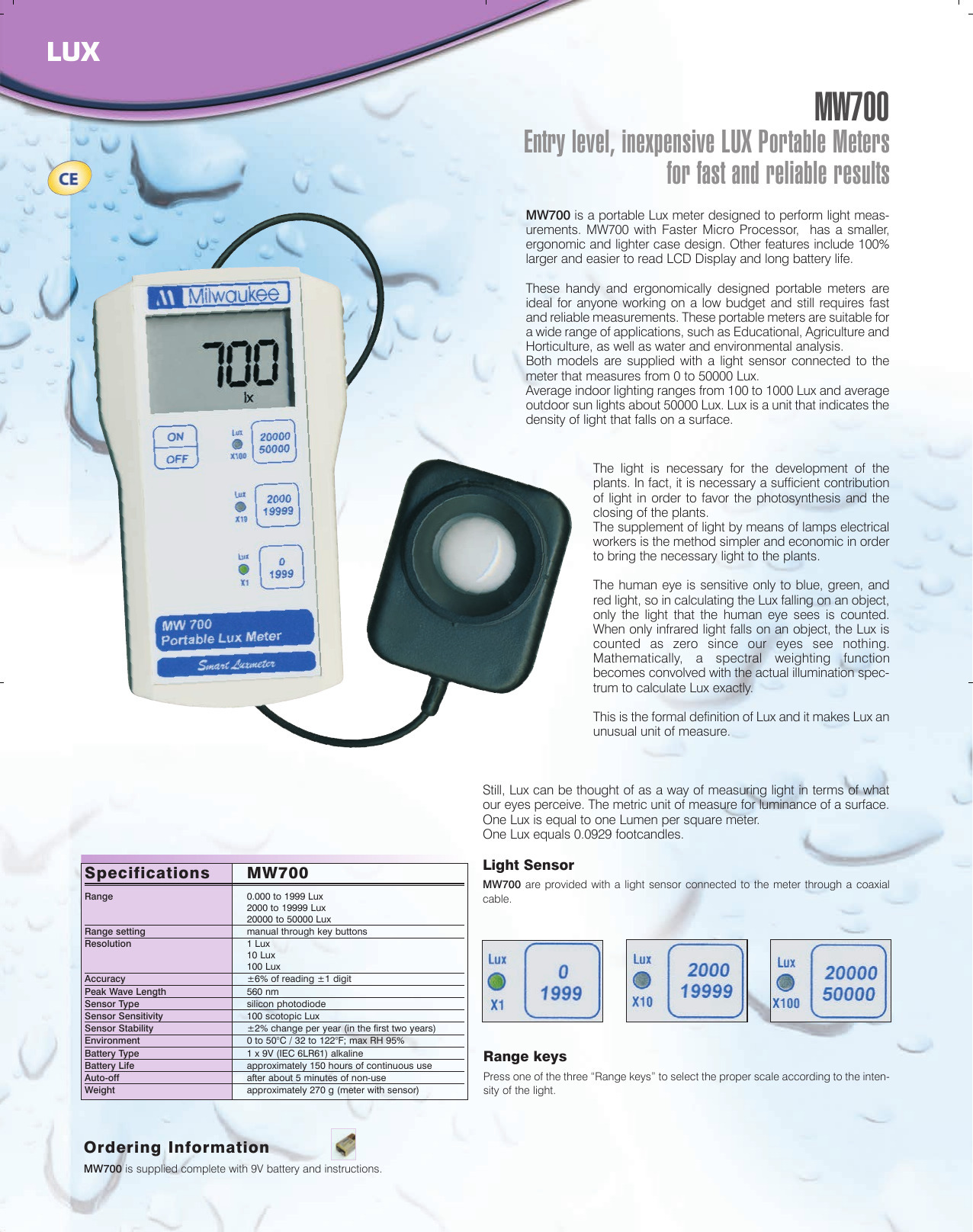 El luxómetro MW700 de Milwaukee es ideal para los sectores Educación, agricultura, horticultura, acuarios, piscicultura, análisis medioambiental, riesgos laborales.