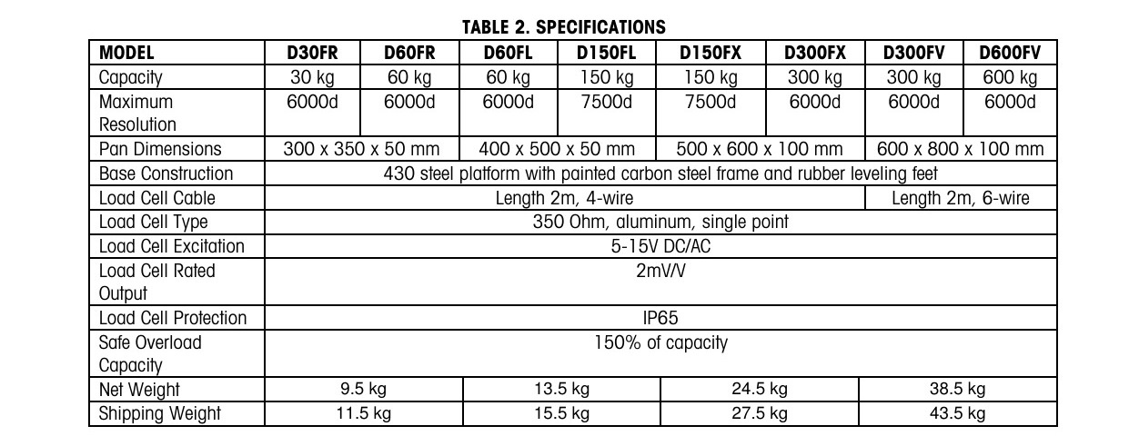 Cinco capacidades populares (30 kg, 60 kg, 150 kg, 300 kg, 600 kg) en 4 tamaños estándar de la industria (300 × 350 mm, 400 × 500 mm, 500 × 600 mm y 600 × 800 mm).