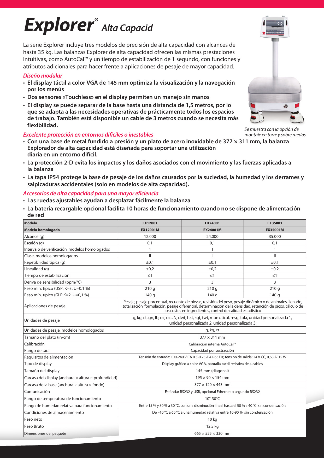 Explorer EX2202 características de equilibrio de carga superior de precisión
