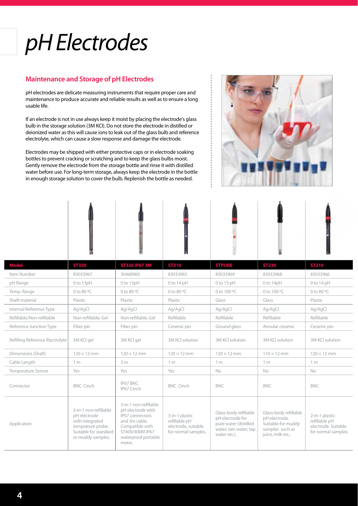 Todos los electrodos resistentes y duraderos están construidos con ejes de plástico o vidrio y están diseñados para resistir el uso diario. Todos los electrodos incluyen un sensor de temperatura, que acciona la compensación automática de temperatura y asegura mediciones precisas. Todos los electrodos encajan perfectamente en los porta electrodos de los medidores de banco OHAUS y las pinzas de los electrodos en todos los medidores portátiles OHAUS.