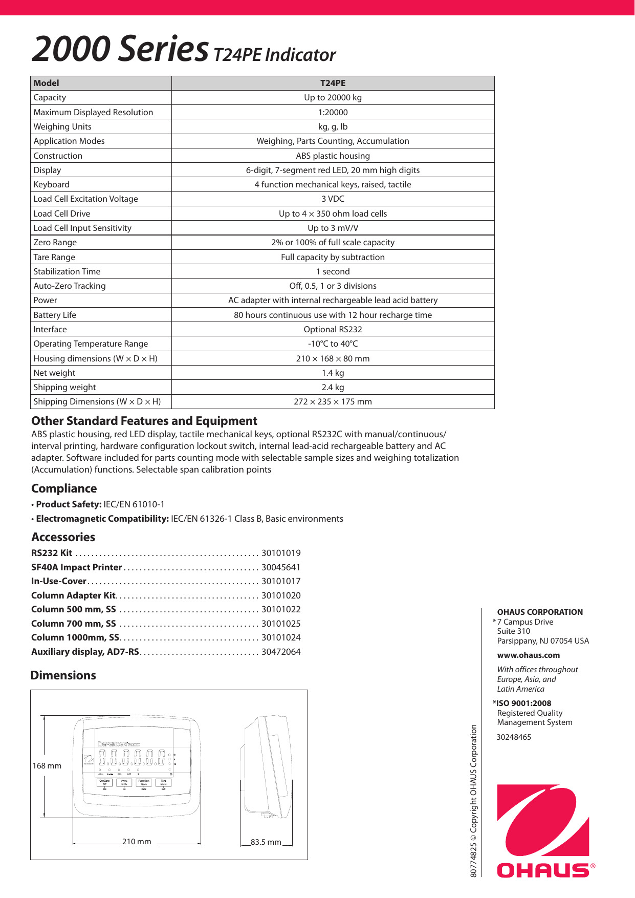 INDICADOR DE BALANZA – > MARCA: OHAUS -> MODELO: T24P ; realizamos entrega en las ciudades de Lima, Arequipa, Cusco , Moquegua , Tacna , Ica , Chiclayo , Trujillo, Cajamarca, Piura, Tumbes, iquitos, Huancayo , Ayacucho , Pucallpa, Huanuco , Cerro de Pasco ; llevamos mas de 10 años comercializando OHAUS en Peru , somos especialistas importando indicador de balanza , accesorios para balanzas , indicador de balanza ohaus, indicador de balanza ohaus serie 2000Indicador SERIE 2000 OHAUS – T24P