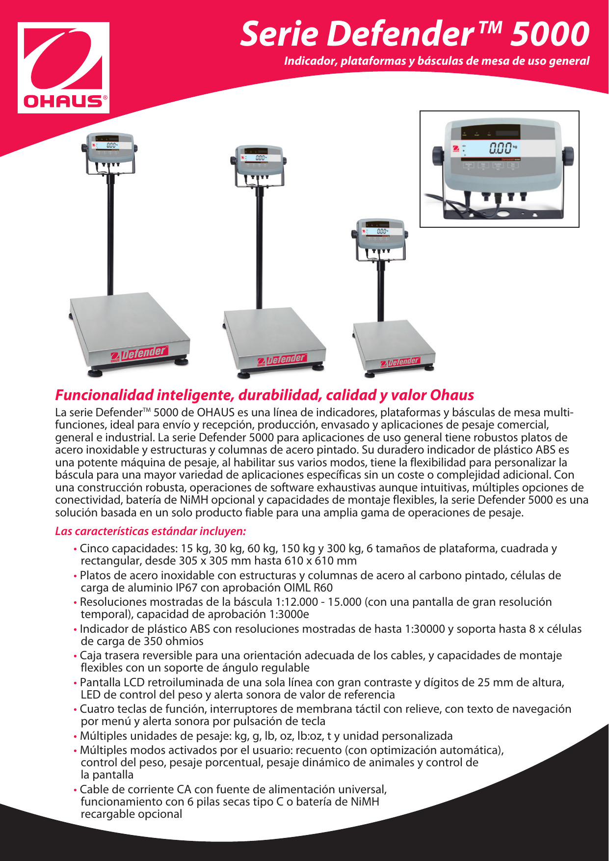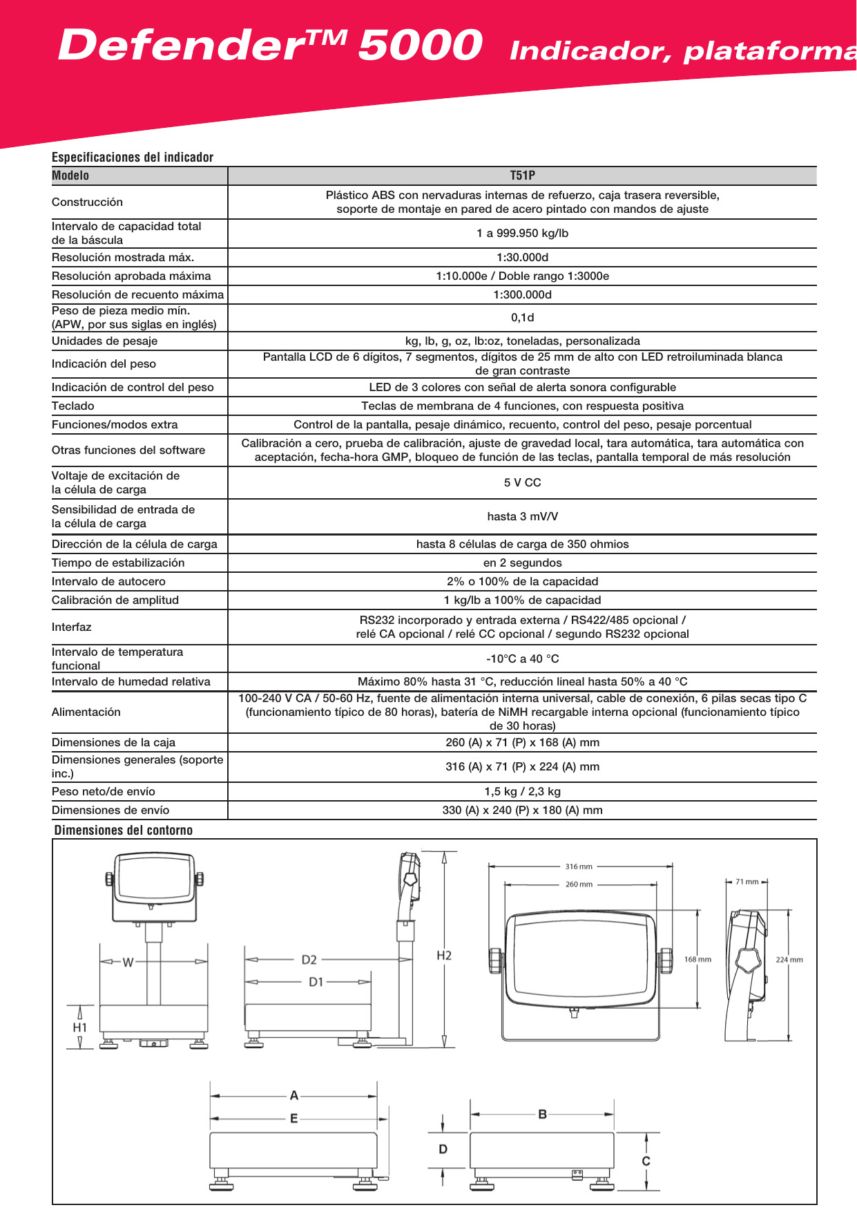 Aspectos destacados de los indicadores OHAUS T51P: