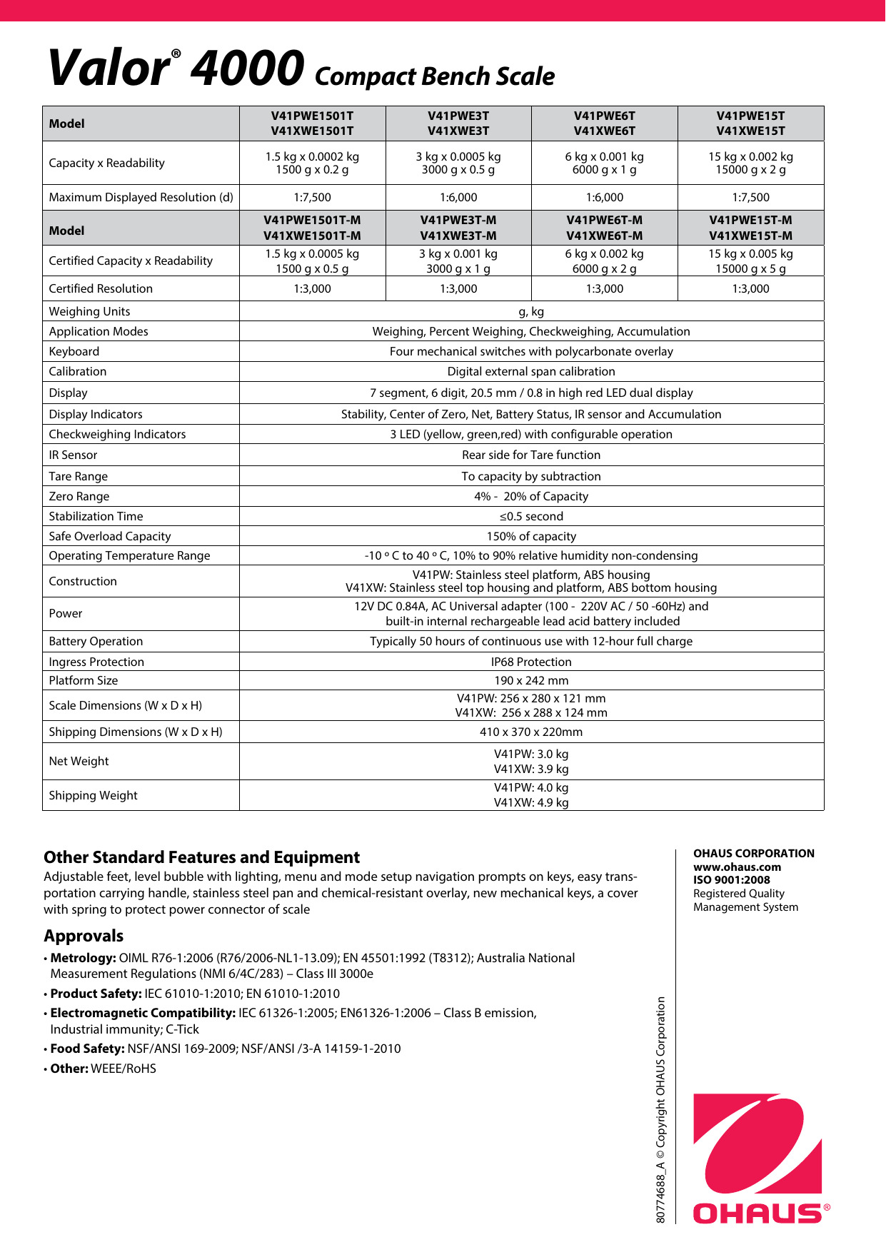 Características del OHAUS V41PWE3T Valor 4000